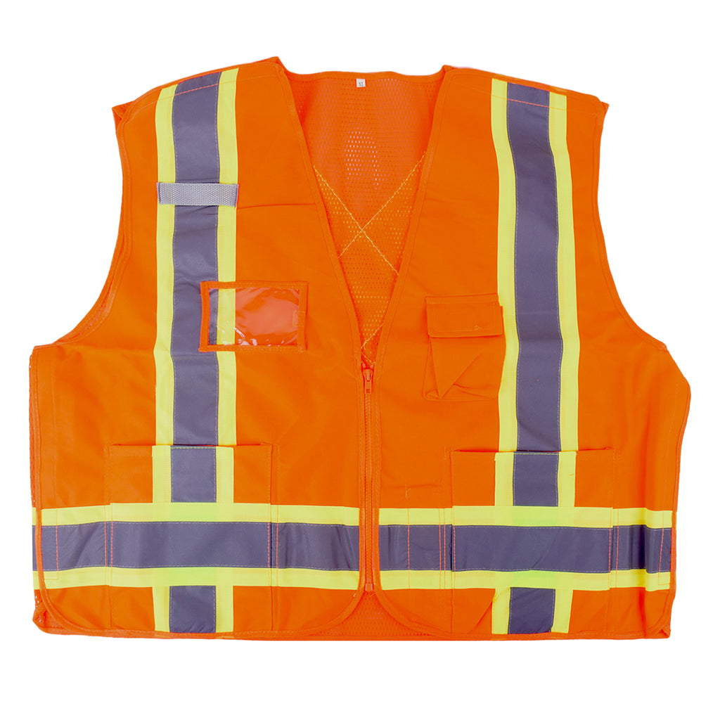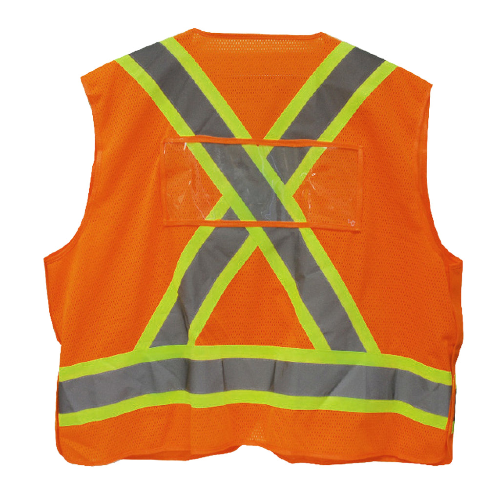 TWXpert® High-visibility 5-point Tear-Away Mesh Traffic Vest offers 360 degrees of visibility with reflective tape and hi visibility yellow mesh. It features two reflective stripes on the front, and on the waist band, and an "X" on the back. Velcro closures on shoulders, waistband, and front, allows a personalized adjustment and a quick safety release.