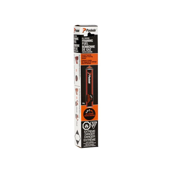 Paslode's All-Season Framing Fuel Cell is designed to work efficiently with Paslode cordless framing nailers, including models CF325 and IM325. This fuel cell ensures consistent performance, even in cold temperatures as low as 14°F (-10°C),...