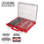 Our Ratchet and Socket Set features sockets that have FOUR FLAT™ Sides that deter rolling and are wrench compatible for maximum productivity. The 90-tooth ratchet tool provides 4° of arc swing and a slim profile for work in tighter spaces. We’ve stamped the sizes into each socket for easy-to-read visibility. You can keep both the SAE & Metric 56-piece ⅜” and 50-piece ¼” Drive Ratchet and Socket Sets organized in the included PACKOUT™ Low-Profile Organizer equipped with a clear top for easy identification of parts at a glance. This PACKOUT™ Organizer is IP65 rated and built from impact-resistant materials for durability on and off the jobsite with a reinforced hinge and heavy-duty latches. The Compact Low-Profile Organizer is part of the MILWAUKEE® PACKOUT™ Modular Storage System, allowing you to custom-build storage systems to easily transport and organize your tools and accessories. This Combo Kit includes 106 total pieces: a 56 Piece 3/8 in. Drive Ratchet and Socket Set (48-22-9008), a 50 Piece 1/4 in. Drive Ratchet and Socket Set (48-22-9004), and a PACKOUT™ Low-Profile Organizer (48-22-8431).